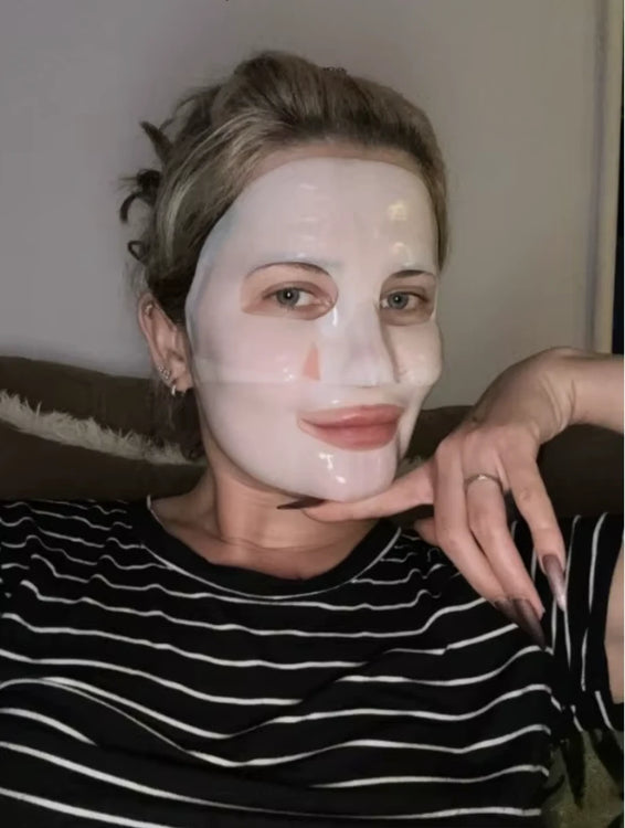 Ich bin wirklich total vernarrt in diese Masken. Ich bin 46 und versuche alles, um meine Falten im Zaum zu halten, und diese hier wirken wirklich Wunder! Ich wünschte nur, ich könnte mir leisten, jeden Abend eine zu tragen. Das zweite Foto zeigt mein Gesicht direkt nach der Anwendung, vor dem Ausgehen. Meine Haut fühlte sich straff und einfach fantastisch an!
